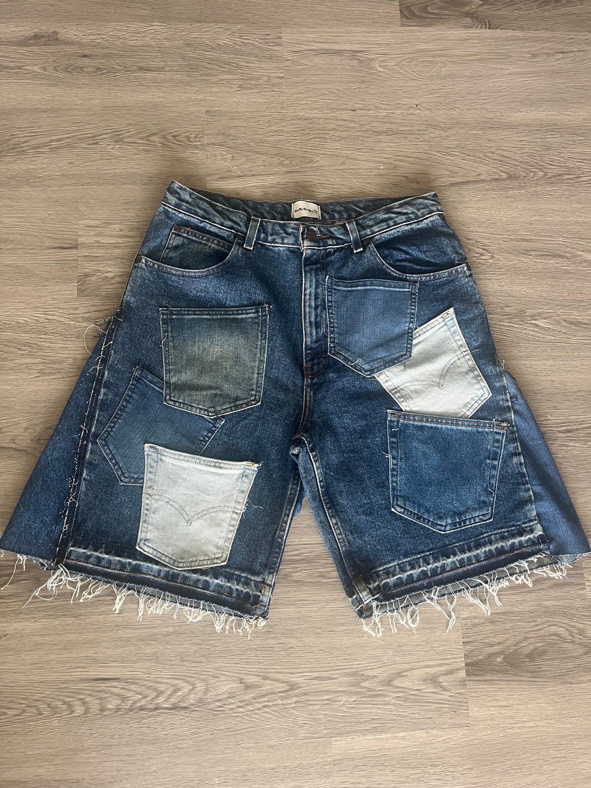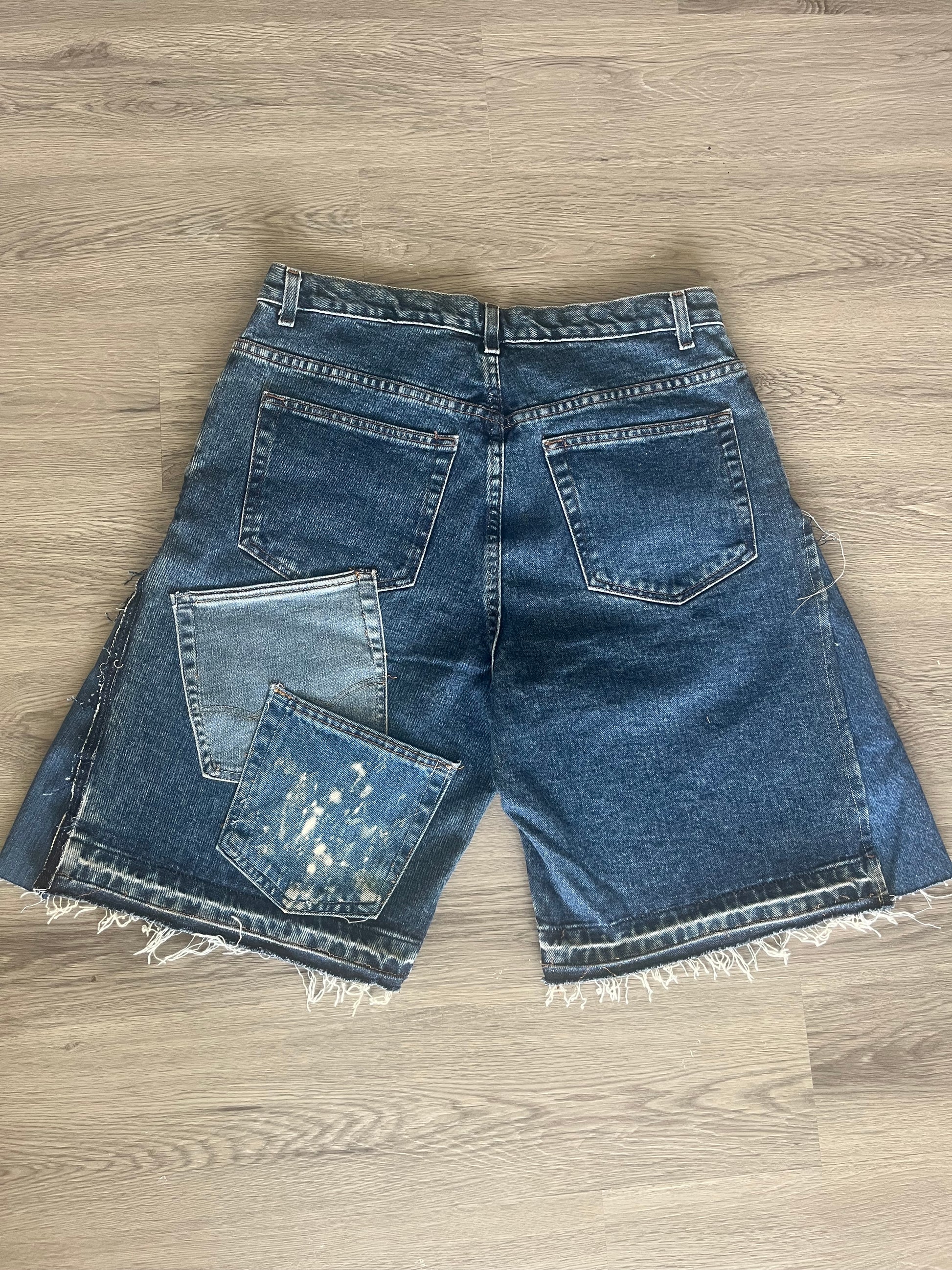 Upcycled vintage jean shorts, with added pocket patchwork.